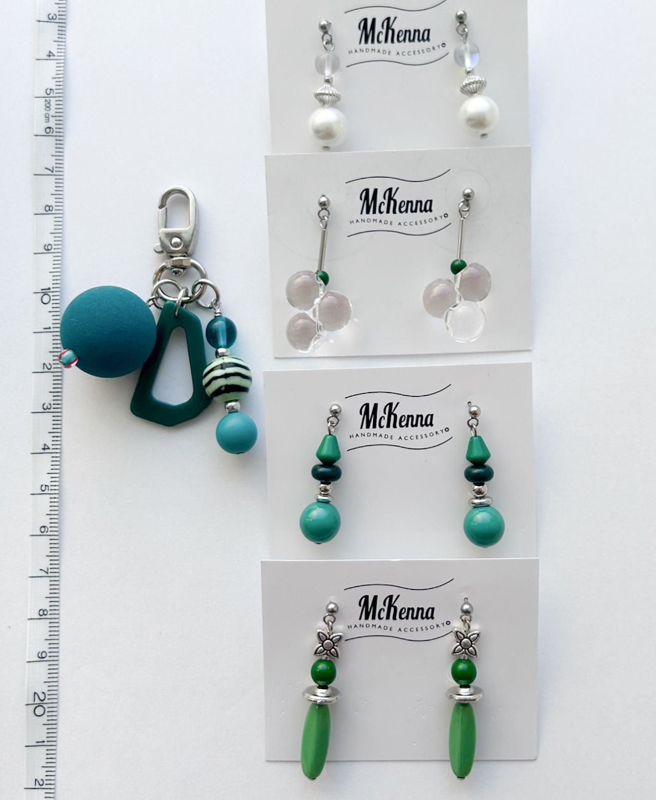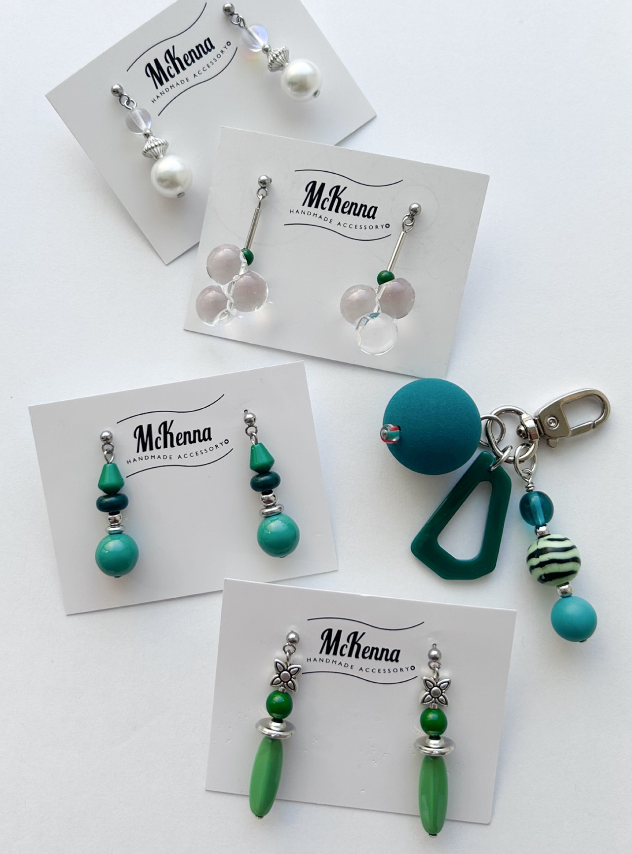 グリーン系のイヤーアクセとキーチャーム